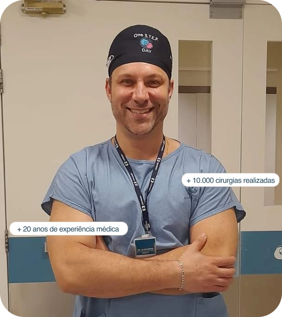 Existe um diferencial no cuidado da cicatriz no pós-operatório. O conhecimento dermatológico do Dr. Alexandre associado a tecnologias modernas (Laser de CO₂ e luz intensa pulsada) traz a possibilidade de uma cicatriz com aspecto estético mais favorável.